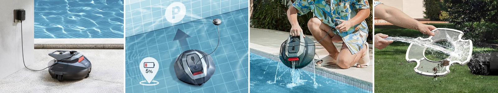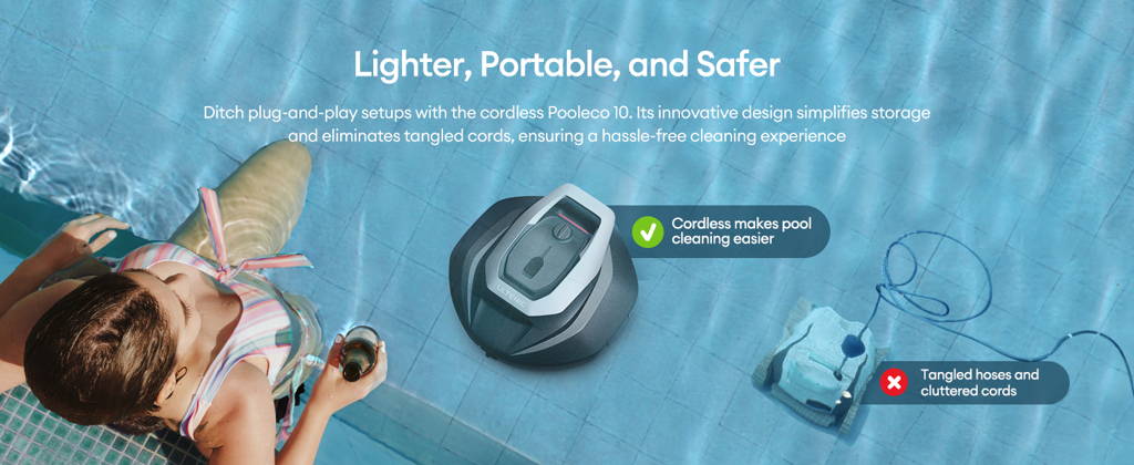 Ultenic Pooleco 10 無線泳池清潔機器人2024-04-25 導讀:了解 Ultenic Pooleco 10 無線泳池清潔機器人 ?了解 Ultenic Pooleco 10 無線泳池清潔機器人 一鍵獲得純凈泳池?輕松清潔泳池,泳池清潔從未如此輕松。只需單擊一下,即可看到清潔過程無縫啟動。 無線設計和卓越性能 流體動力學設計這種空氣動力學結構最大限度地減少了運行阻力,并無縫地貼合泳池地板,從而提高了效率。 大型 2.5L 雜物箱我們的機器人配備寬敞的 2.5 升塵盒和精細的 180um 過濾籃,可最大限度地收集碎片,輕松處理樹葉、毛發和微生物,保證泳池水質純凈。 90 分鐘運行時間和快速充電這款無繩泳池吸塵器采用 5200mAh 可充電電池,充滿電 2.5 小時后可提供長達 90 分鐘的清潔能力。非常適合面積達 861 平方英尺(10 英尺長)的圓形地上泳池。 多功能泳池兼容性專為地上和地下泳池而設計,適應各種泳池形狀,包括圓形、方形和不規則形狀。它可以輕松清潔瓷磚、乙烯基和混凝土泳池,無論您的泳池由什么材料制成,它都是完美的選擇。 快速充電:Pooleco 10 充電 2.5 小時后,每次充滿電可使用長達 90 分鐘,相當于每天進行 3 次徹底清潔。自動停靠:完成清潔周期或電池電量低時,Pooleco 10 會自動停在泳池池壁附近。輕松打撈;告別弄濕或掙扎于鉤子 - 只需使用浮球即可輕松收回機器人。維護方便:清潔后,精細過濾托盤很容易打開并用花園軟管沖洗,輕松維護。